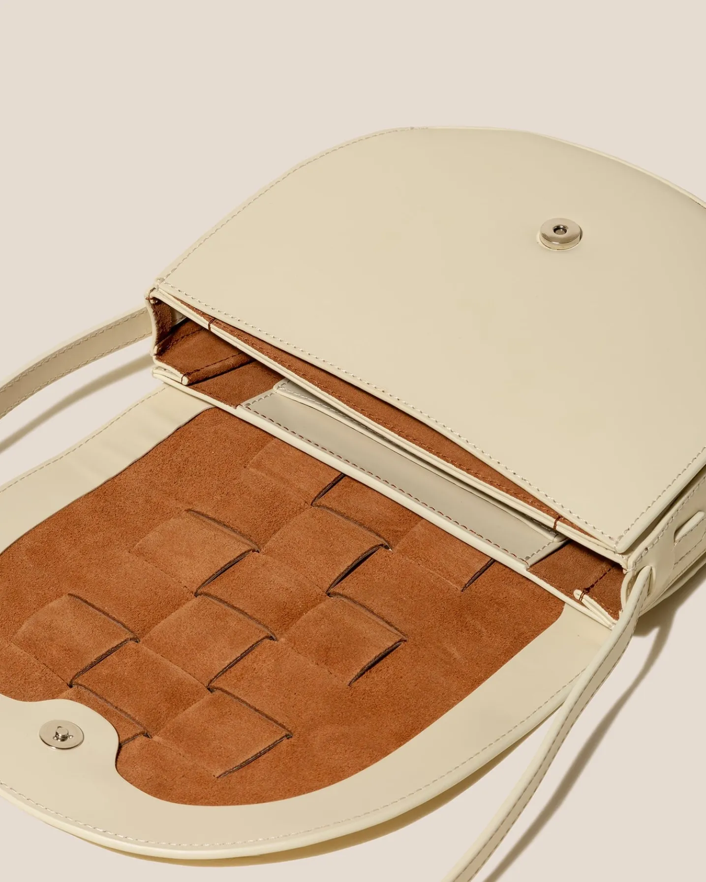Satchel bag with interwoven front detail, crafted in Spanish leather and lined with calf suede.