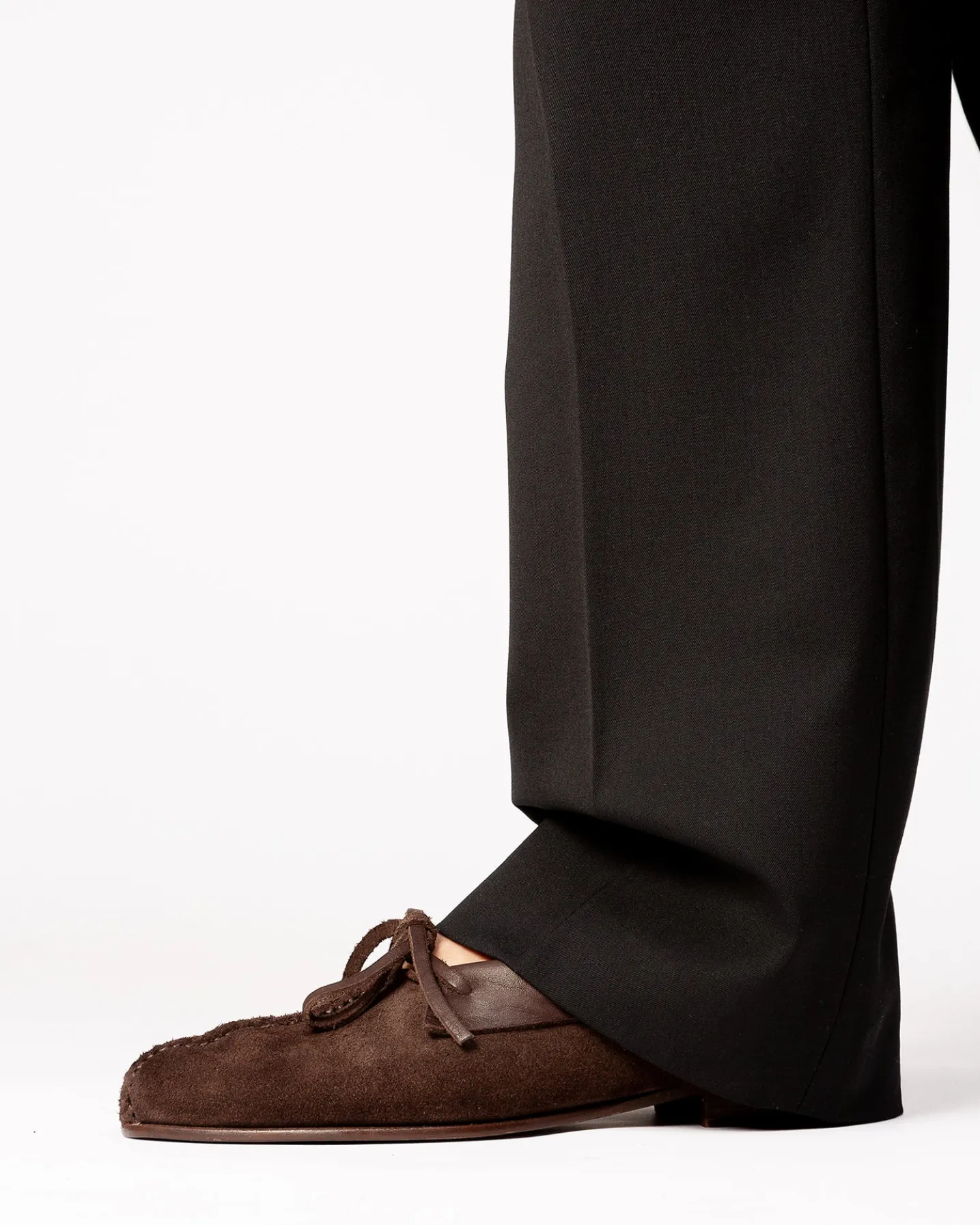 One-piece upper deconstructed babouche crafted in double-sided calf suede.
