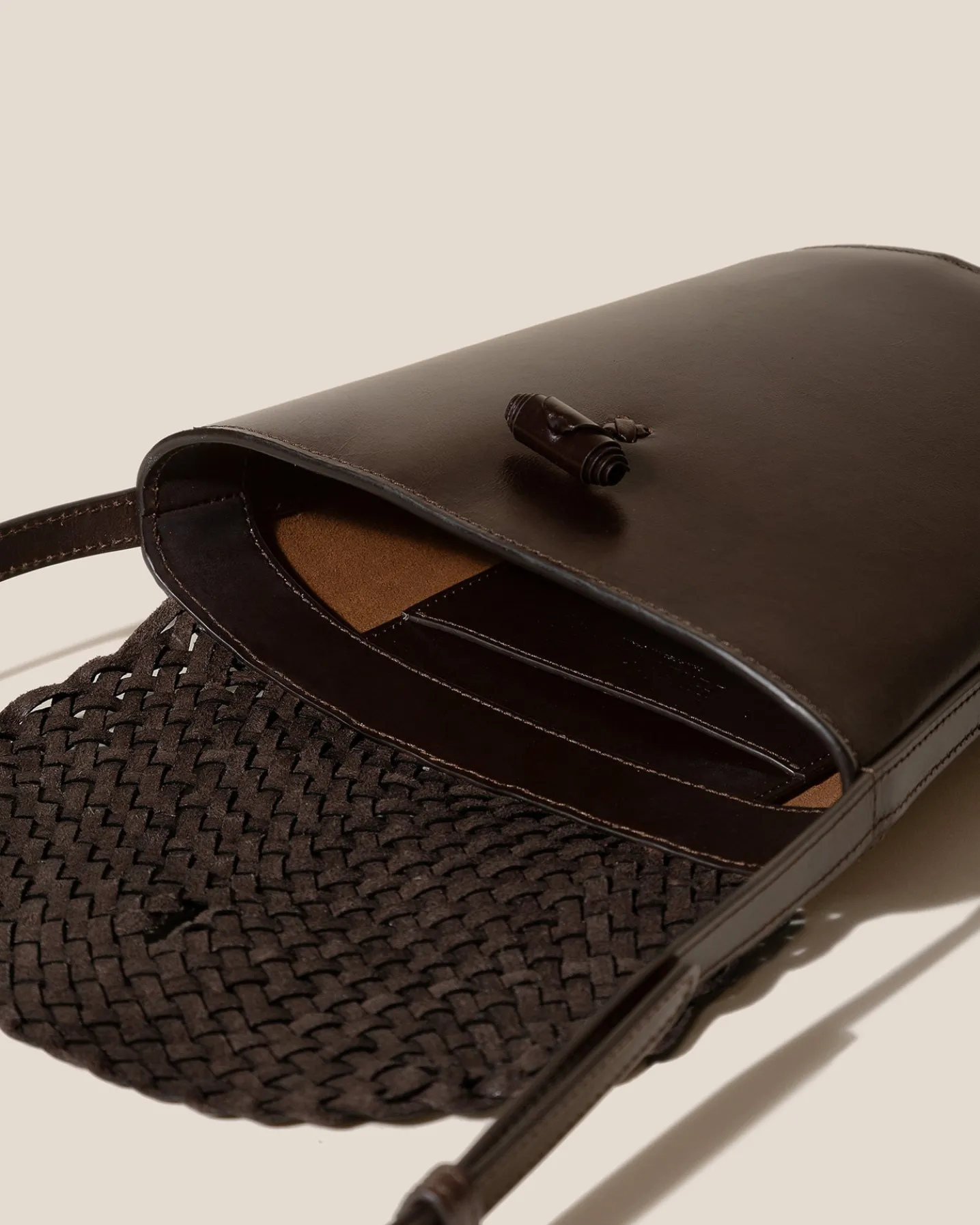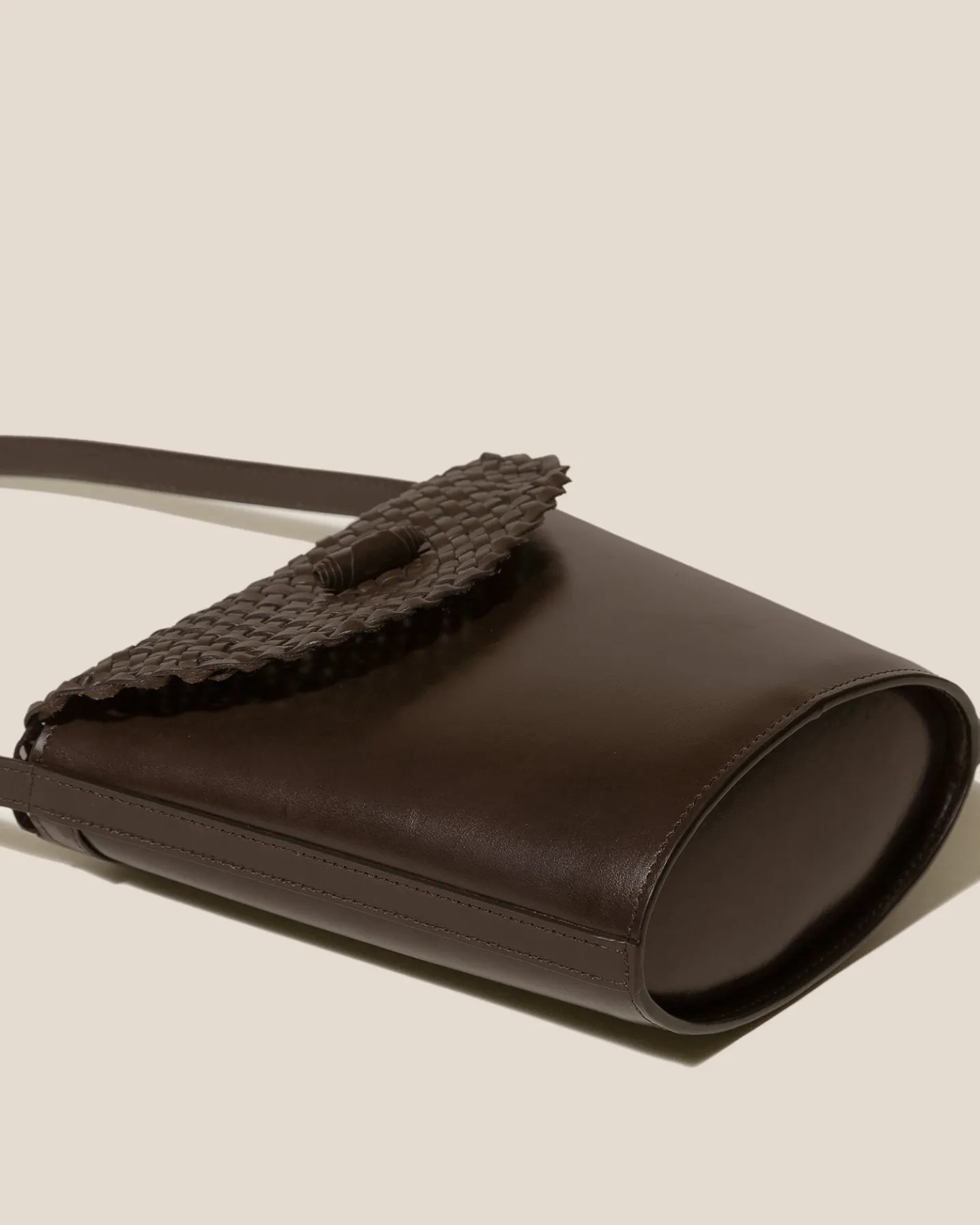 Crossbody bag with braided flap crafted in sleek calf leather.
