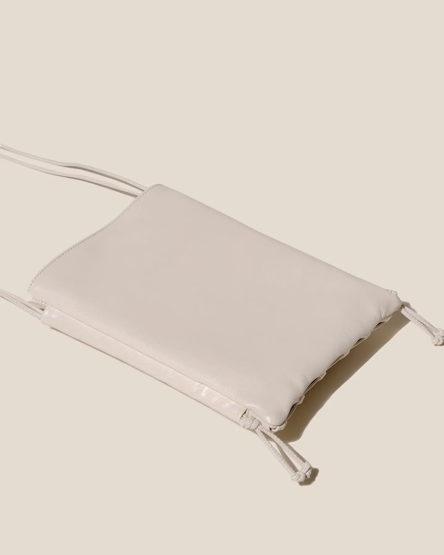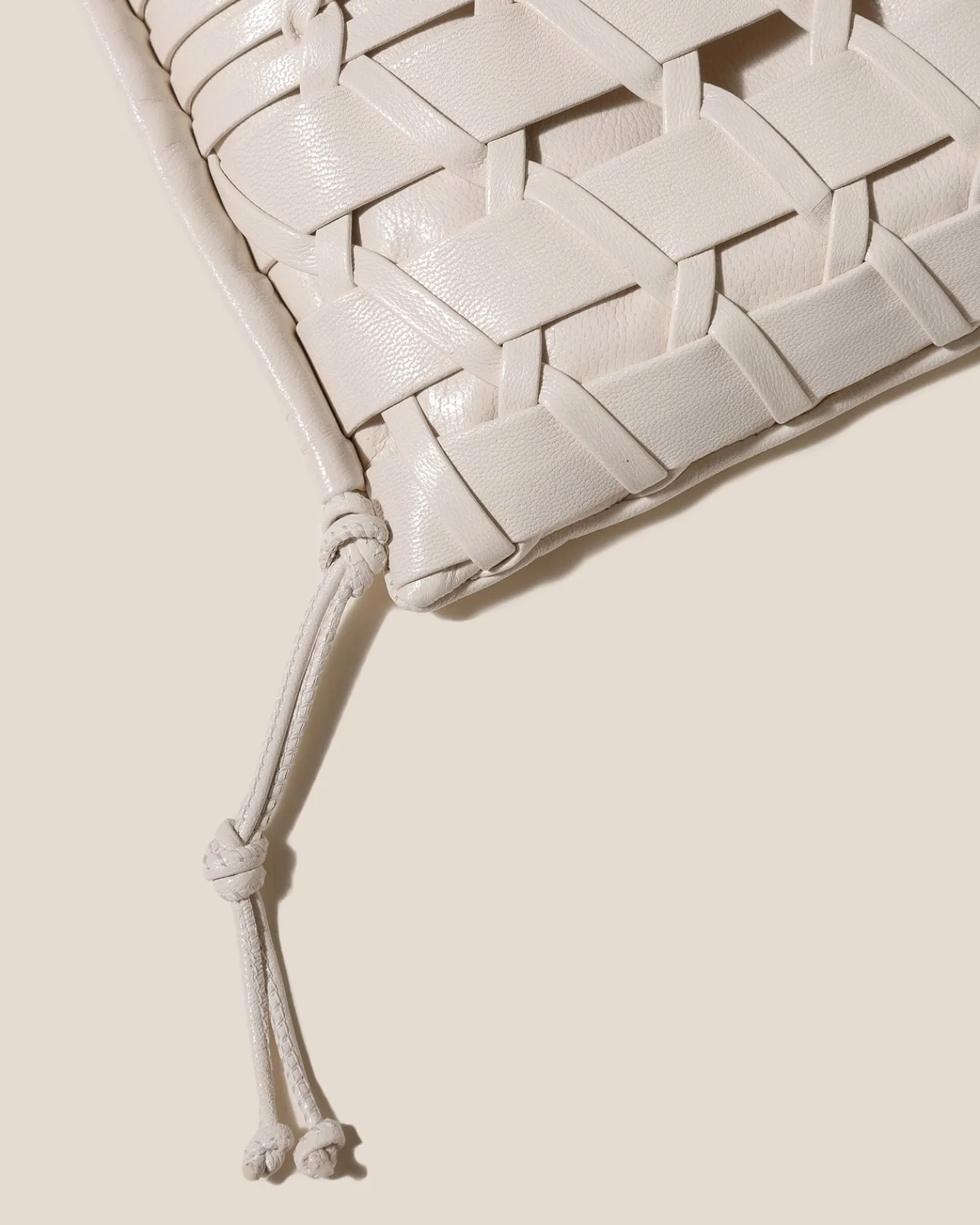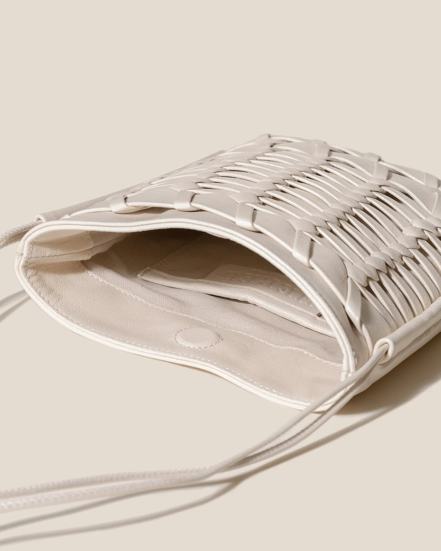 Flat square crossbody bag crafted in braided supple shiny lambskin.