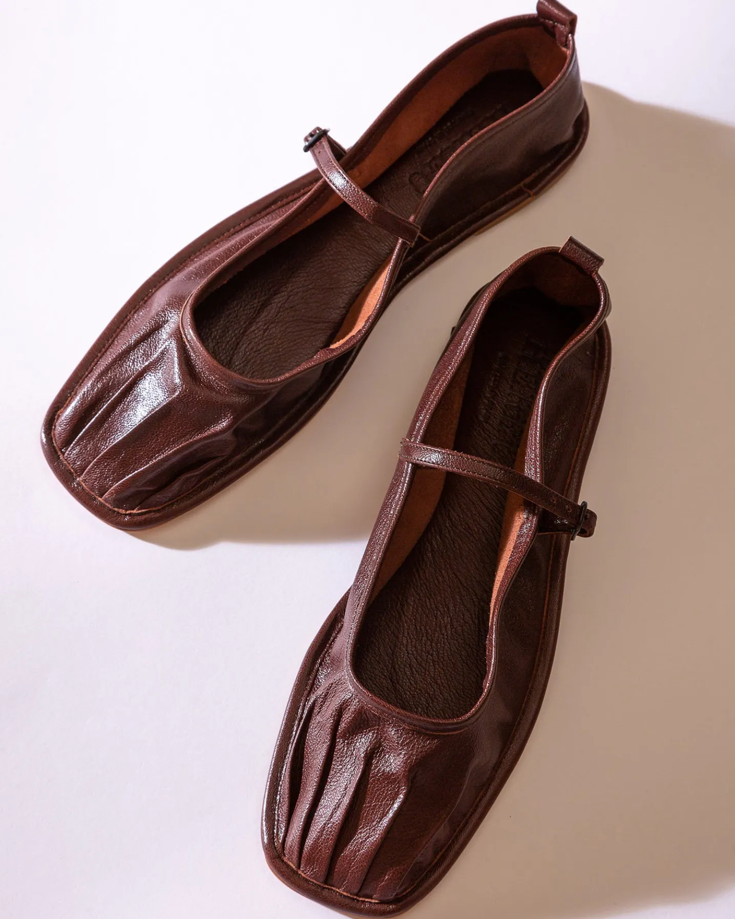 Pleated toe flat Mary Jane crafted in Italian supple shiny lambskin.