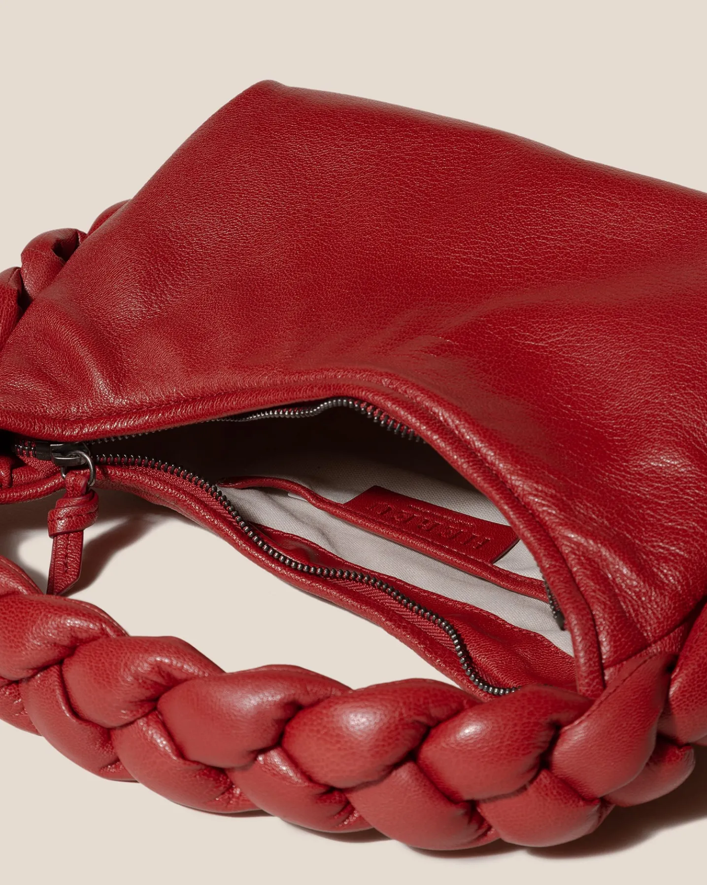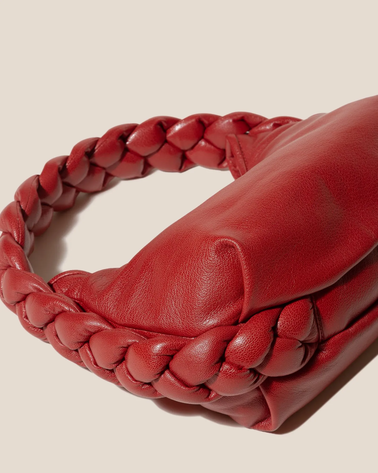 Ultra-soft shoulder bag with plaited padded detail, crafted in supple shiny lambskin.