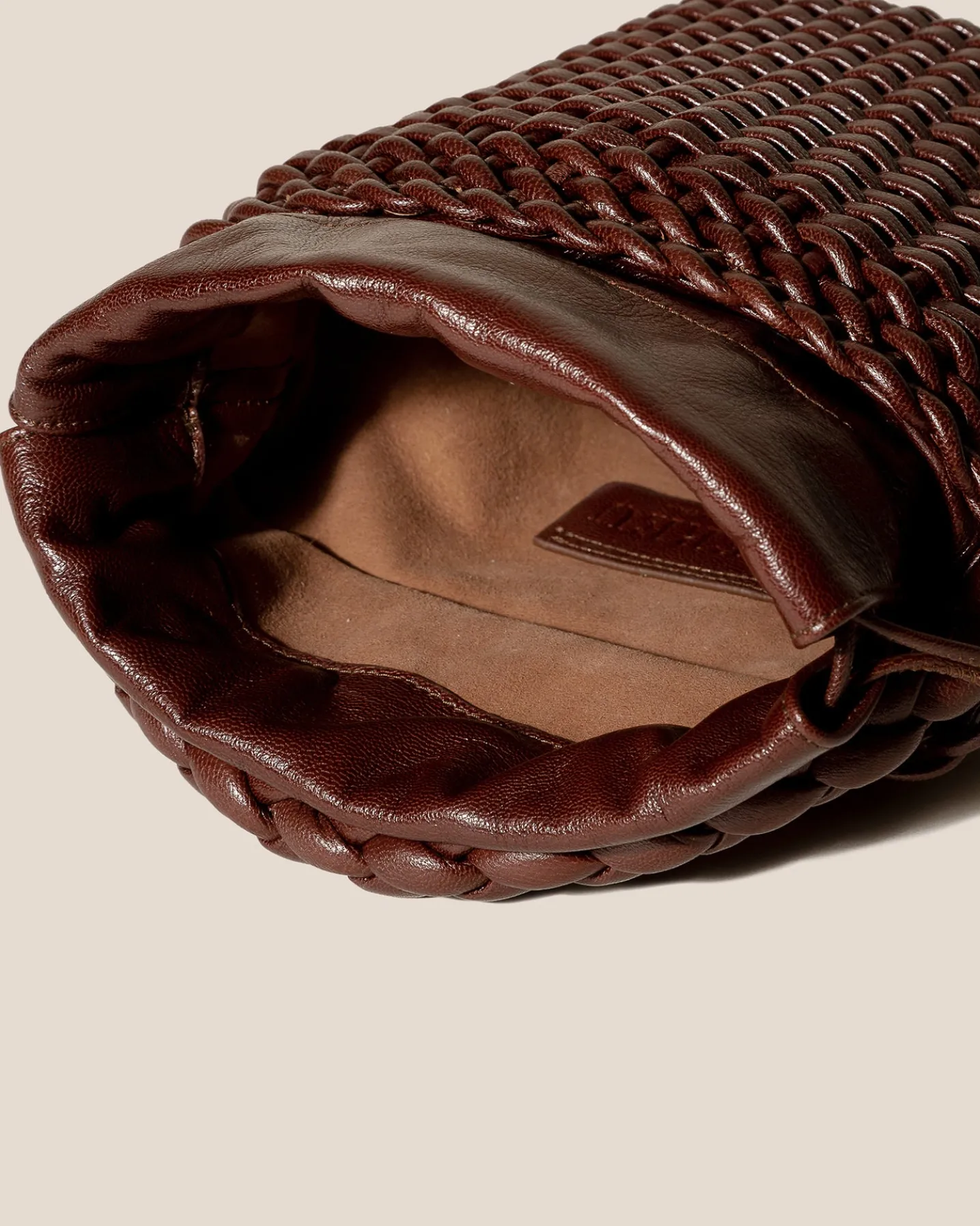 Hand-braided mini tote bag crafted in supple shiny lambskin.