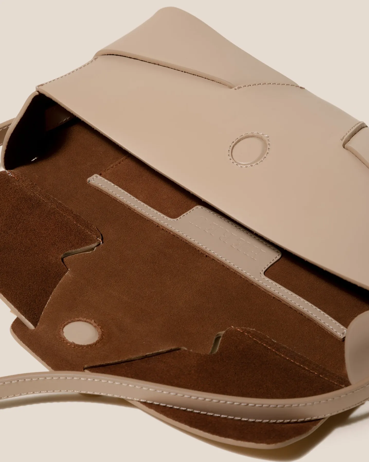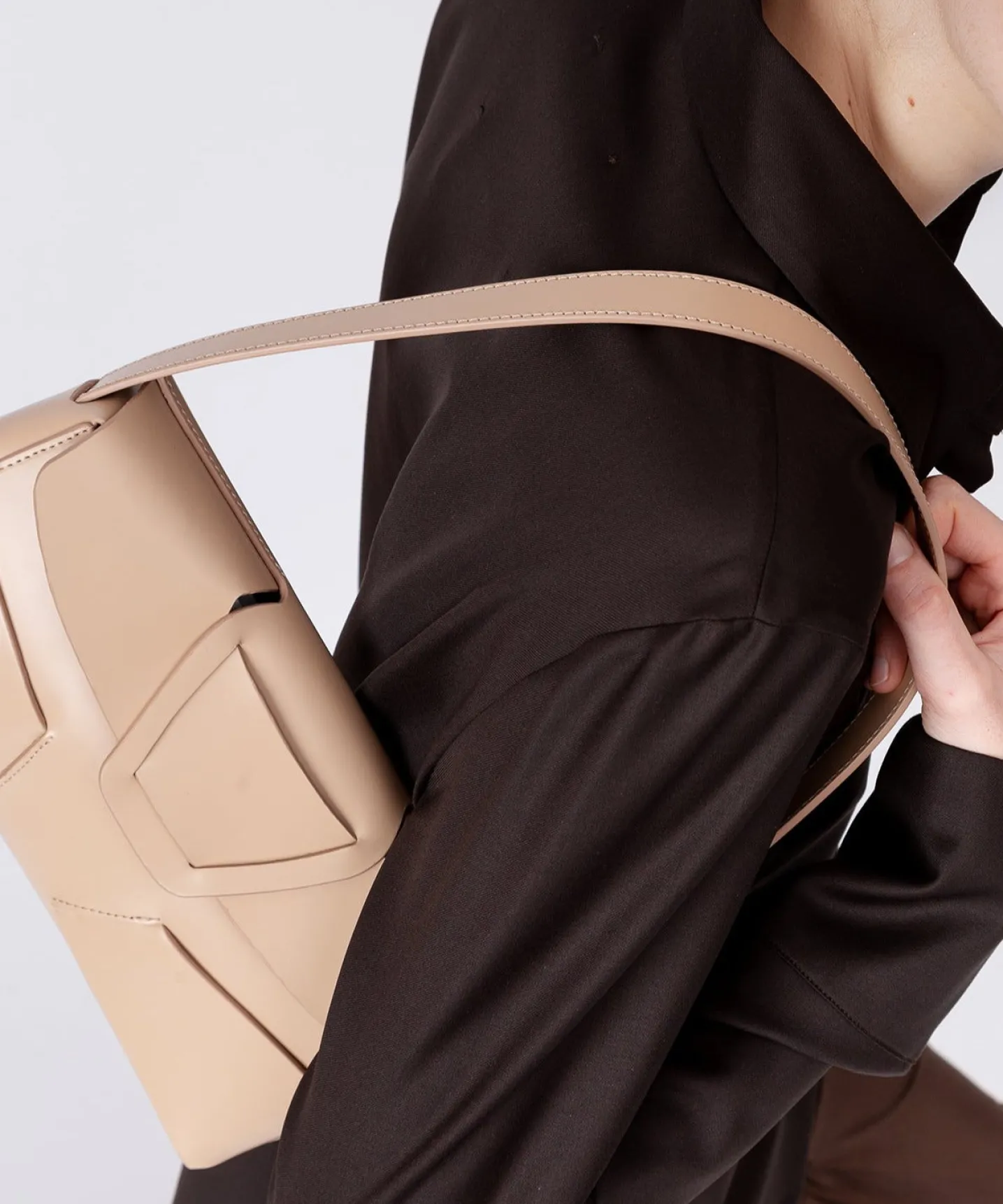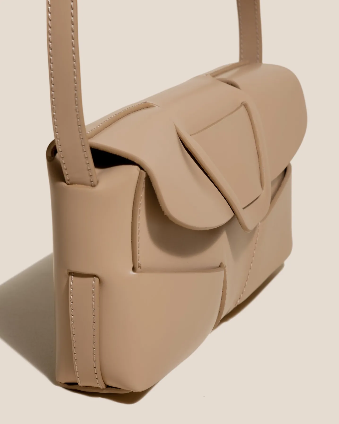 Baguette bag with woven detail in Spanish structured calf leather and lined in calf suede.
