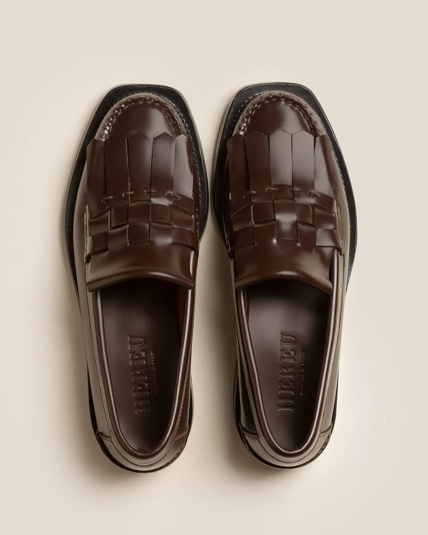 Slip-on loafer with interwoven fringes front detail crafted in structured calf.